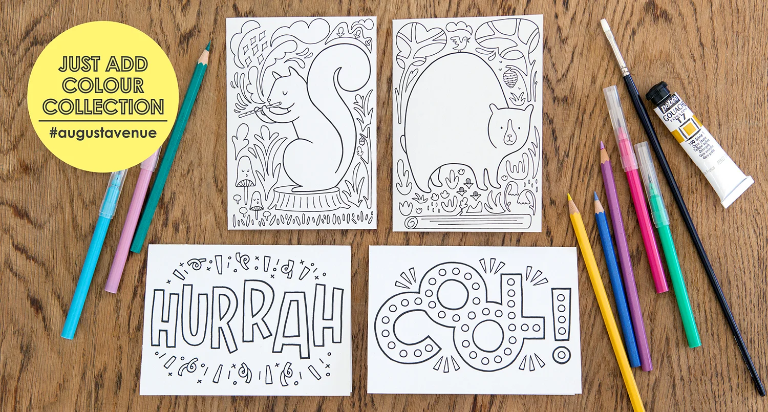 So excited to announce the arrival of a new collection of colouring gift cards with August Avenue - The 'Just Add Colour' Collection!